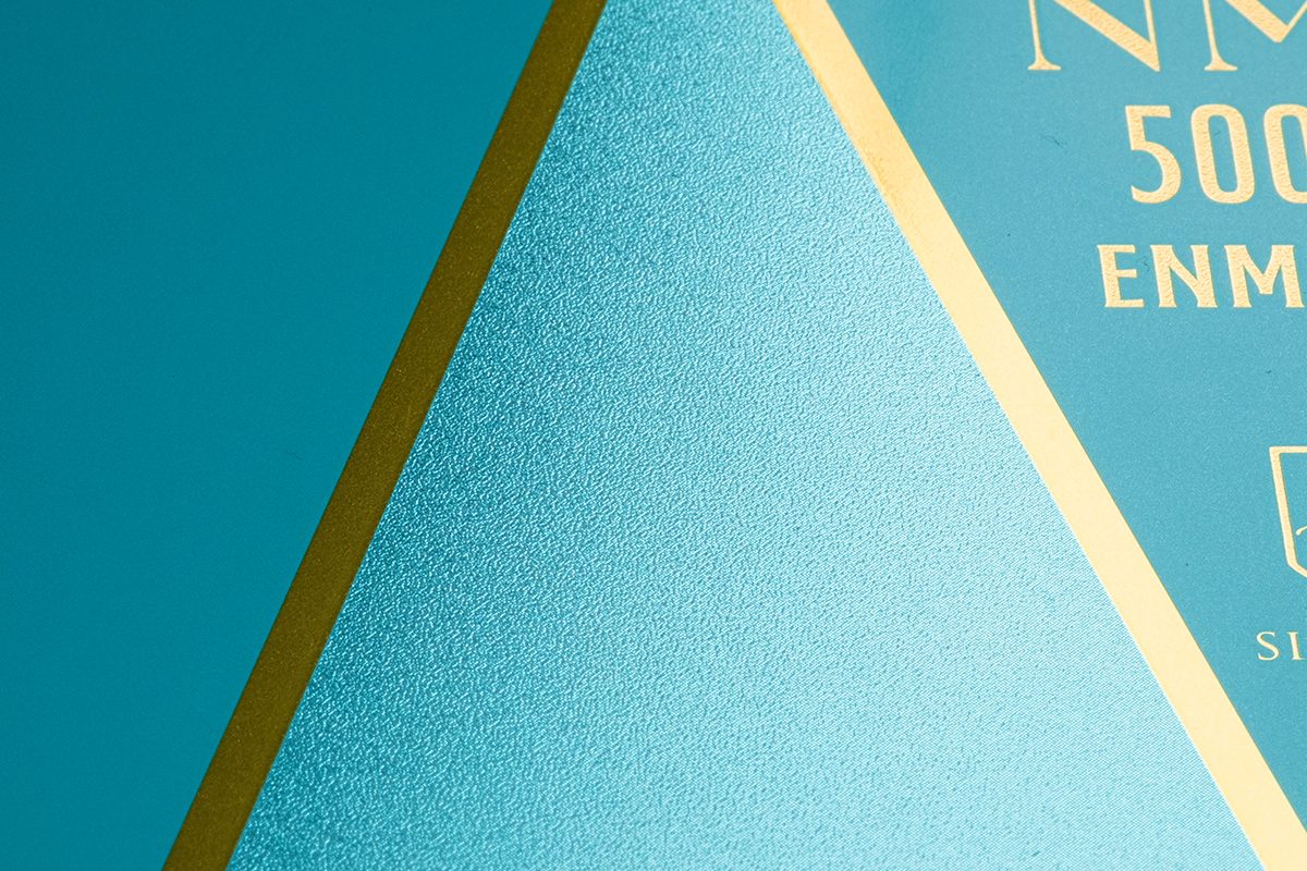 紙面に凹凸のある加工を施す事で、風合いや高級感を演出するのに使われる通常のエンボス加工。